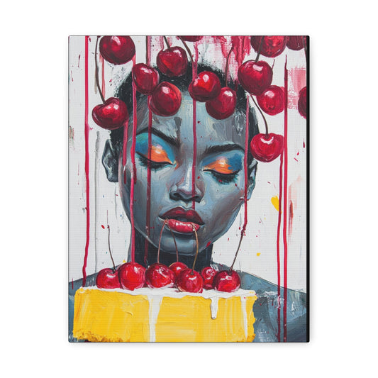 Bold & Beautiful Cherry Portrait – Black Woman Holding Cake Wall Art