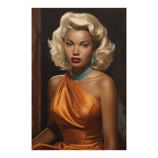 Black Vintage Glamour Poster – Classic Art of Black Woman in Orange Dress