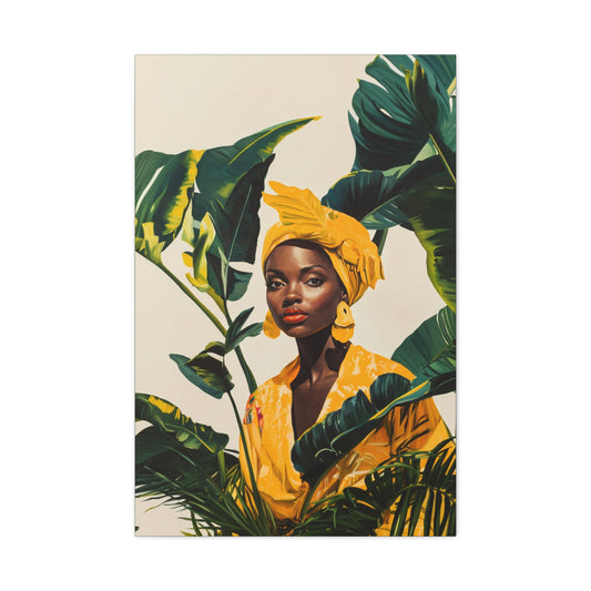 Black Woman in Yellow Headwrap and Dress, Canvas Wall Art