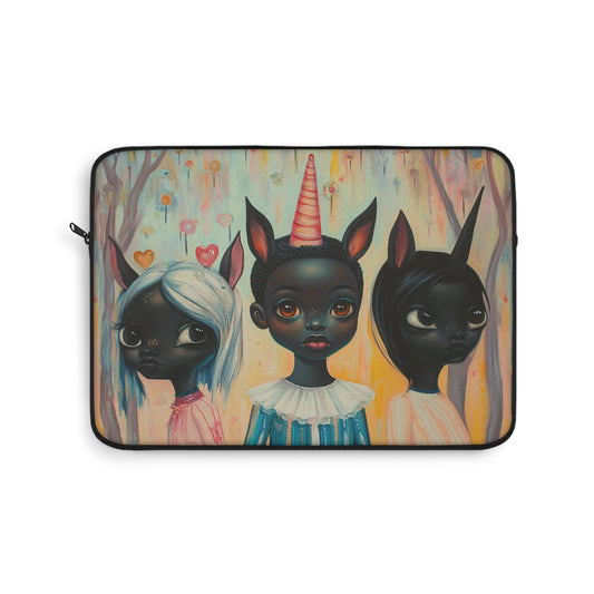 Fantasy Art - Black Unicorn Girls - Laptop Sleeve