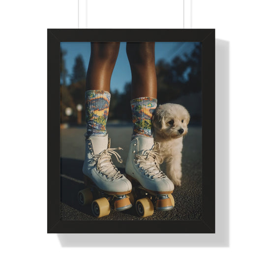 Framed Roller Skating Poster, Vintage Aesthetic Wall Art, Dog Lover Decor