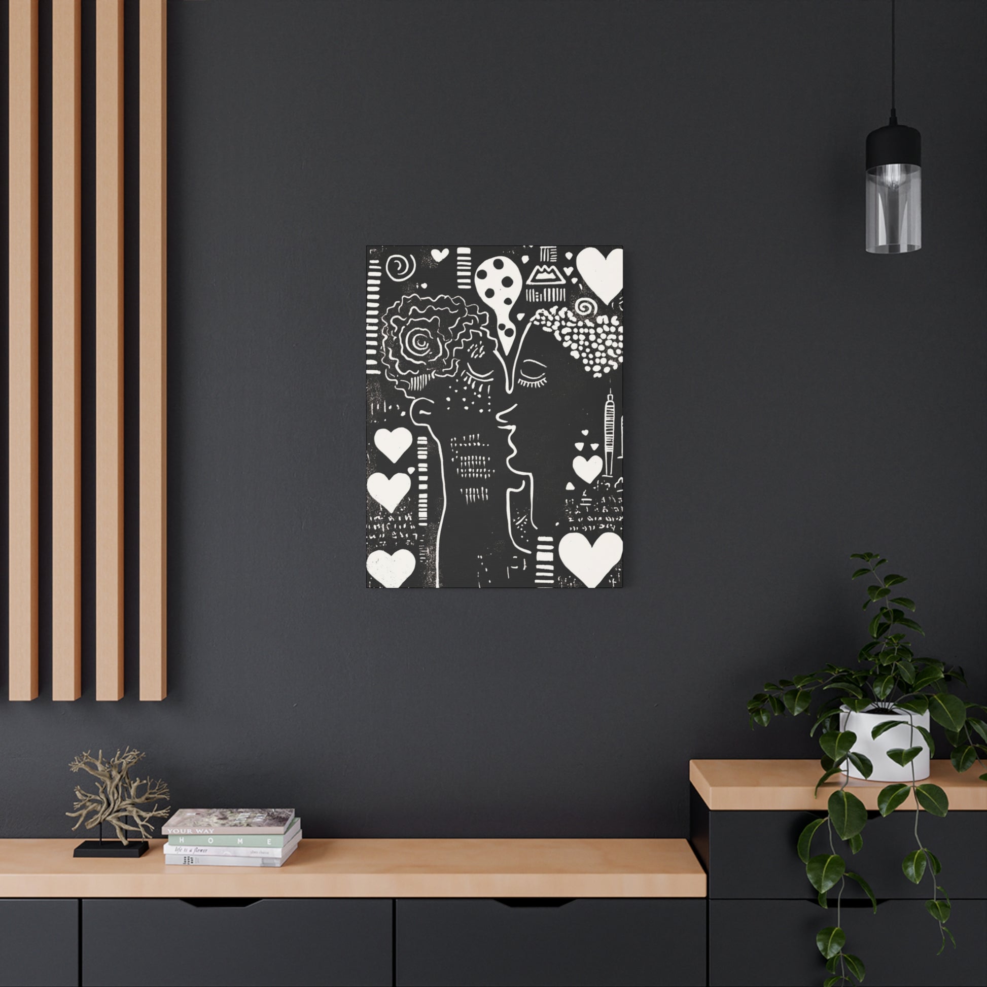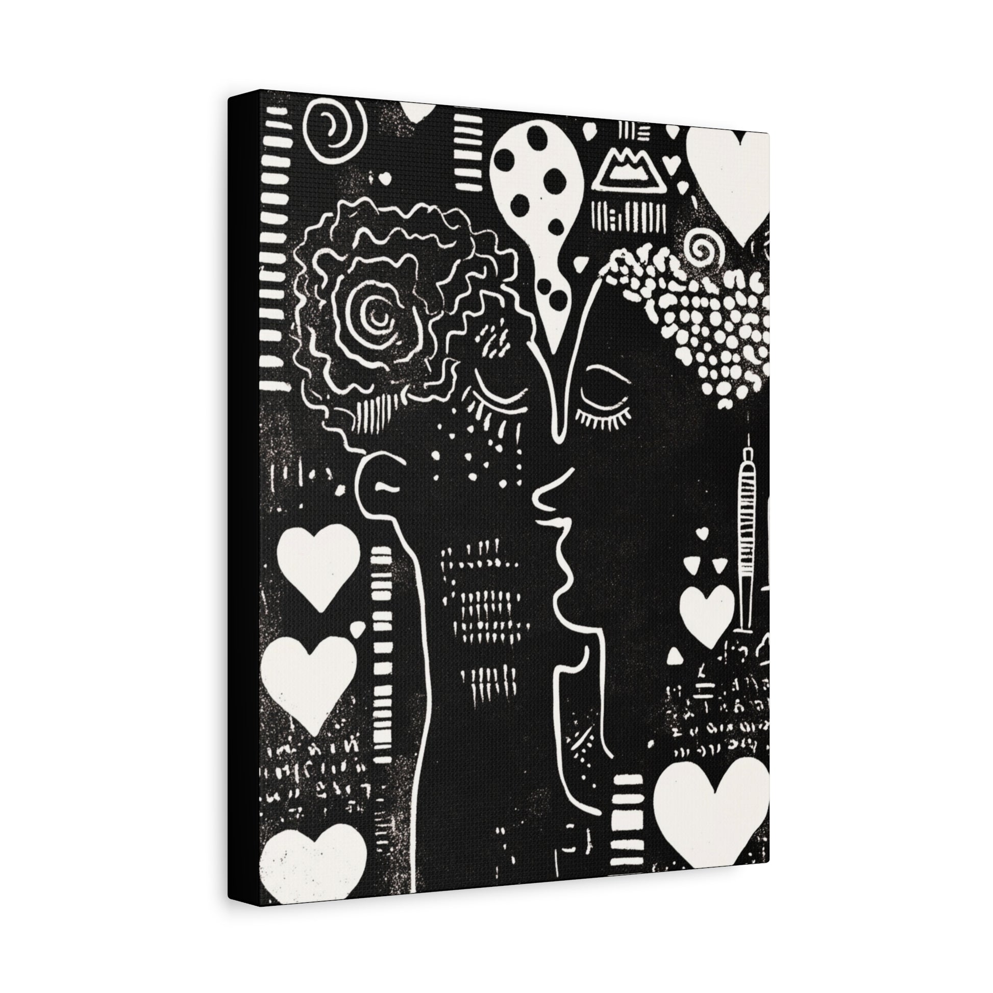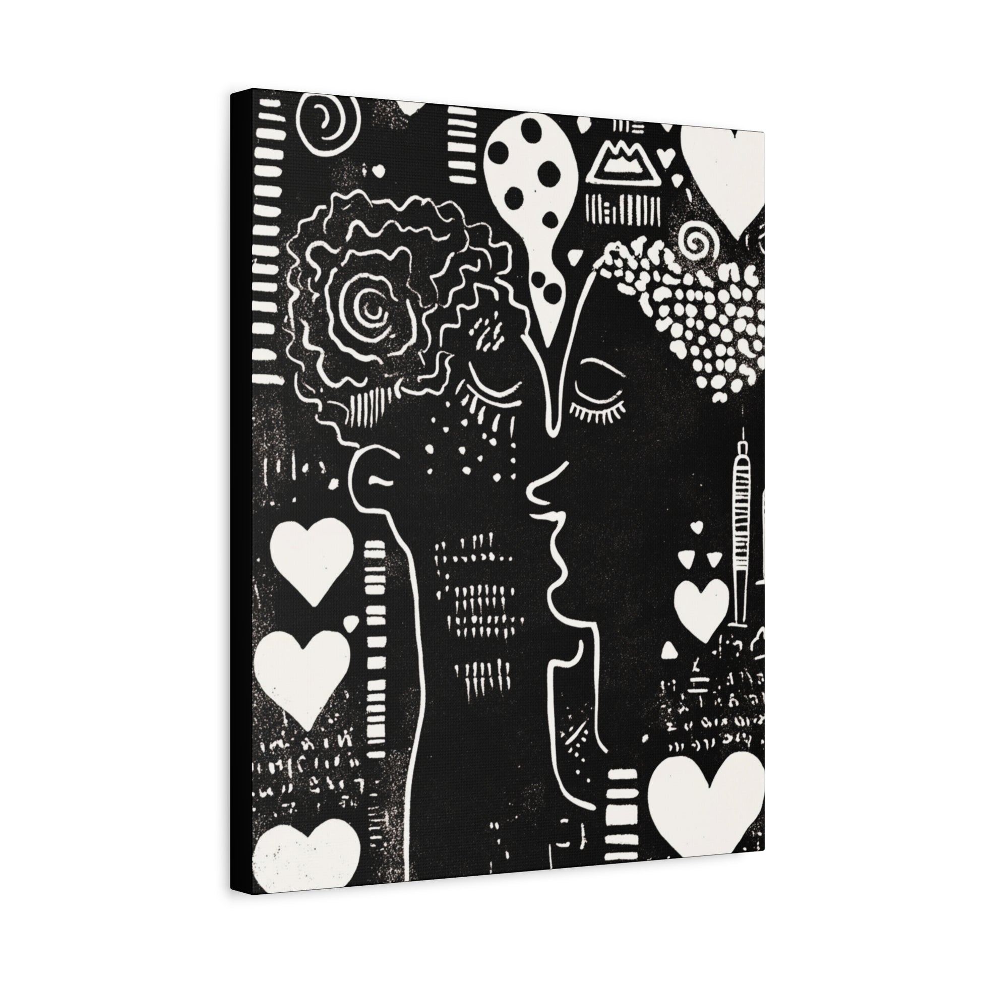 Inspired by linocut and block-print aesthetics. "Love Frequency" is a bold and emotive black-and-white artwork that pulses with rhythm, romance, and cultural resonance.