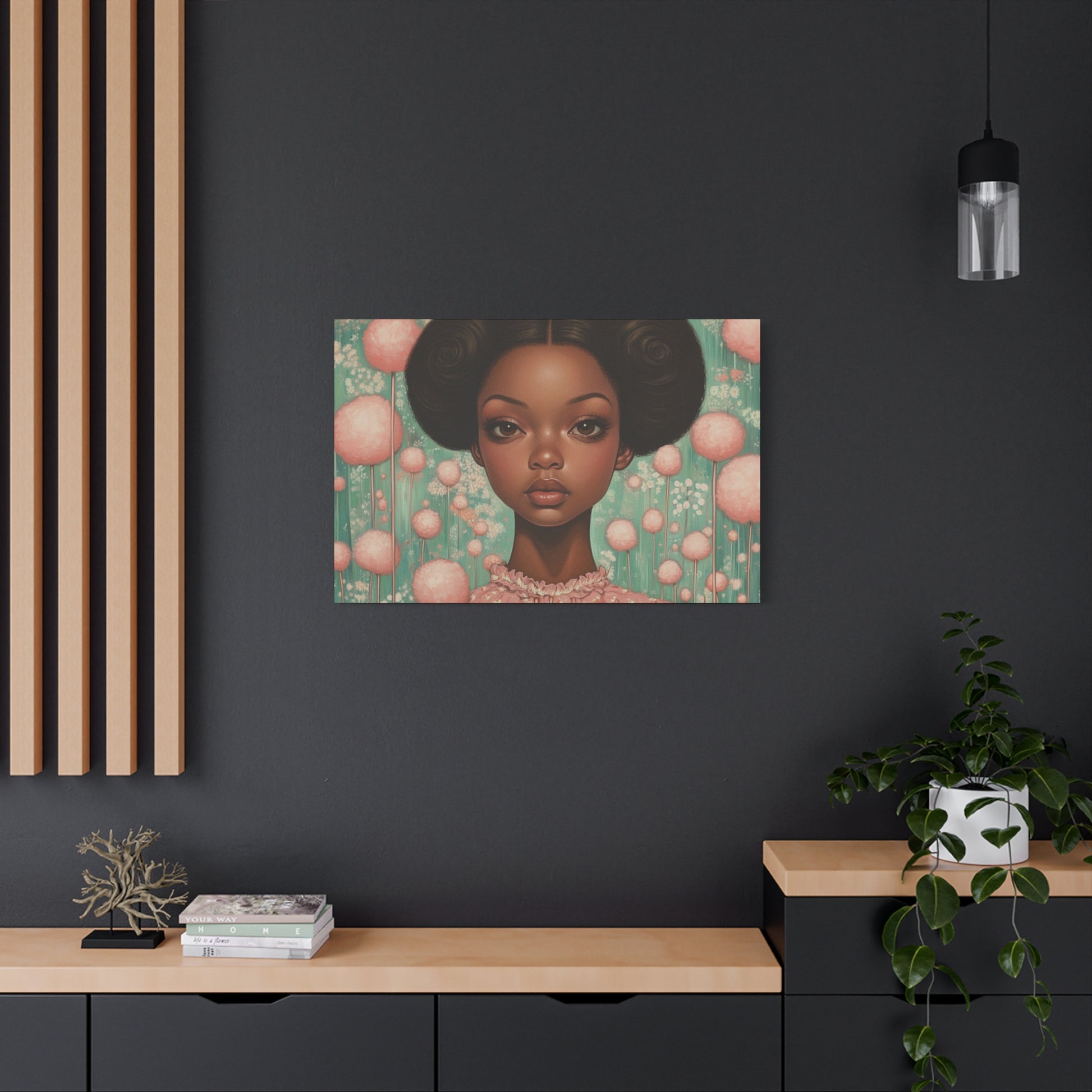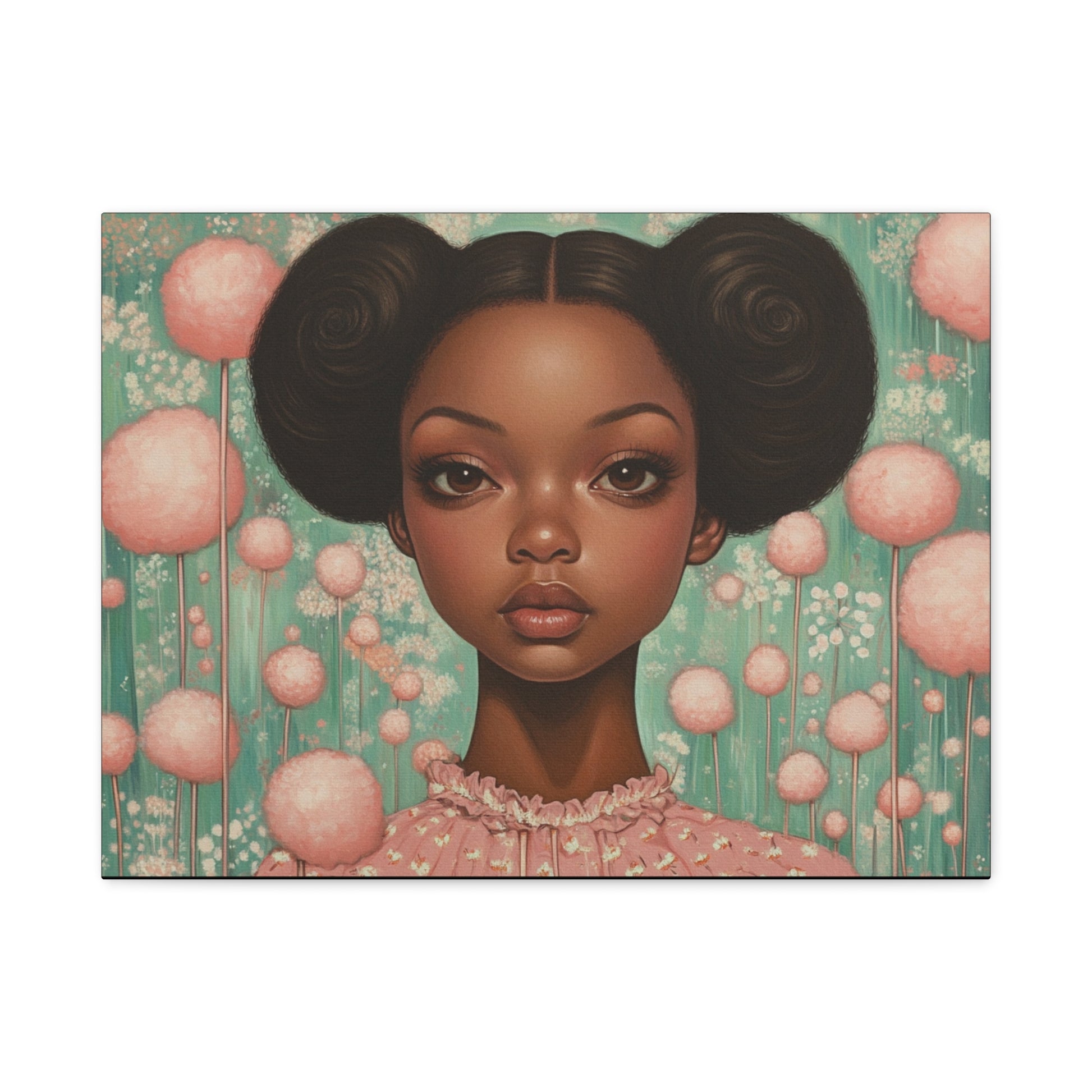 Girl with AfroPuffs Canvas Wall Art for Nursery, Living Room - Pink & Teal