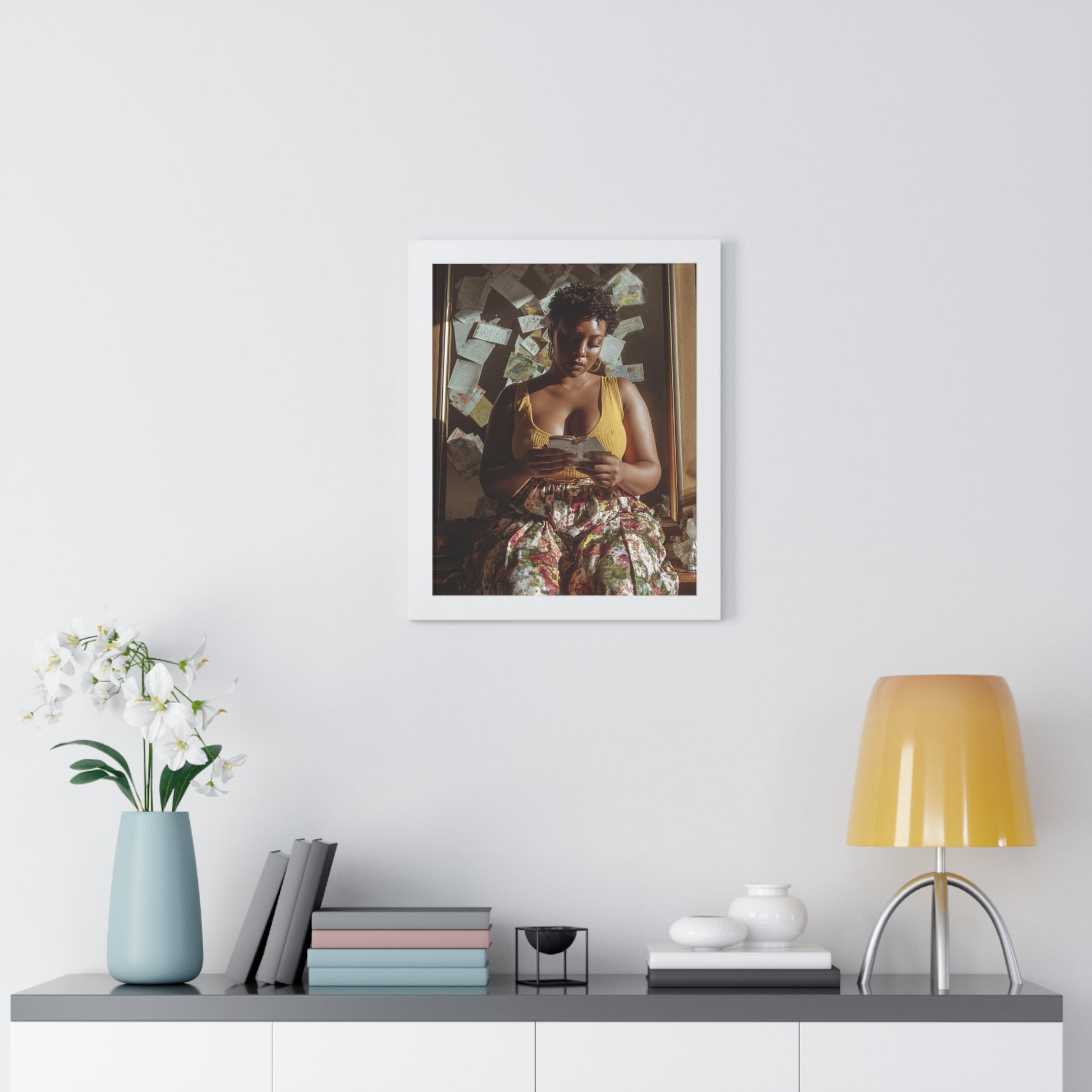 Add a touch of slow living and poetic stillness to your walls with this framed poster. A beautiful portrayal of self-reflection and memory, perfect for modern homes with a vintage soul.