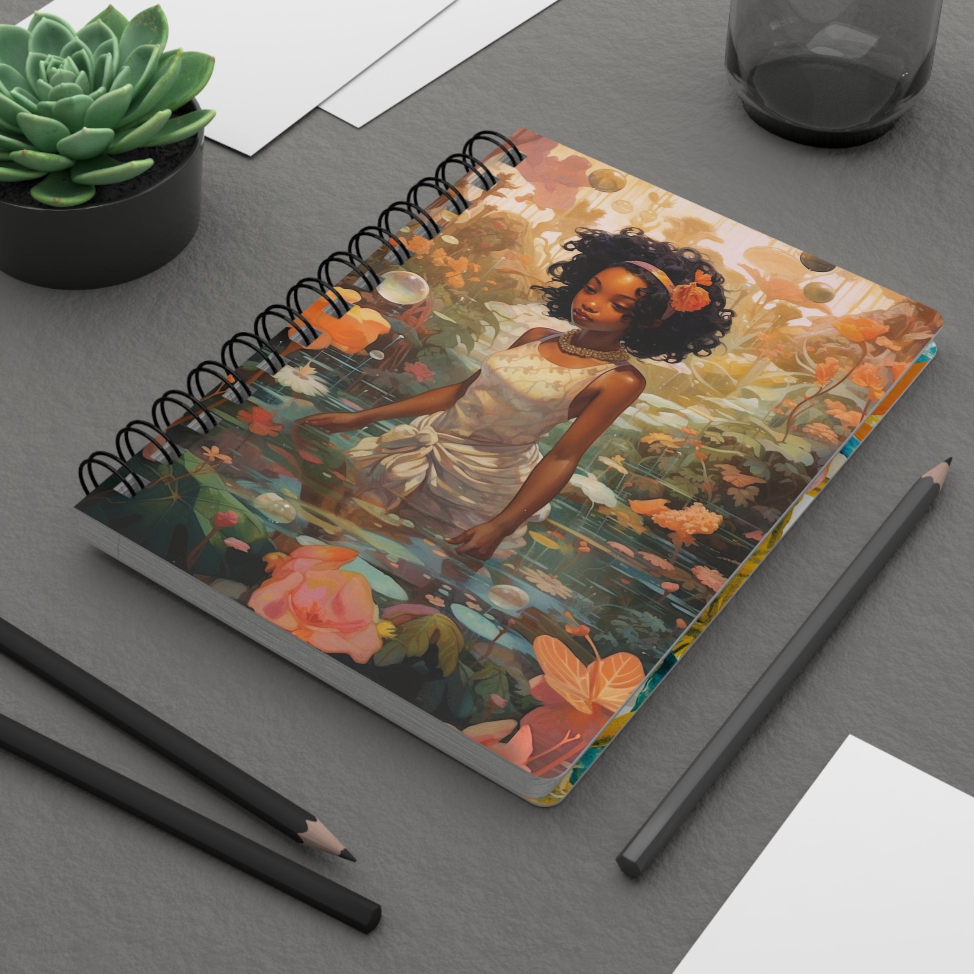 Flowers, Water, and Black Woman | Spiral Bound & Lined Journal