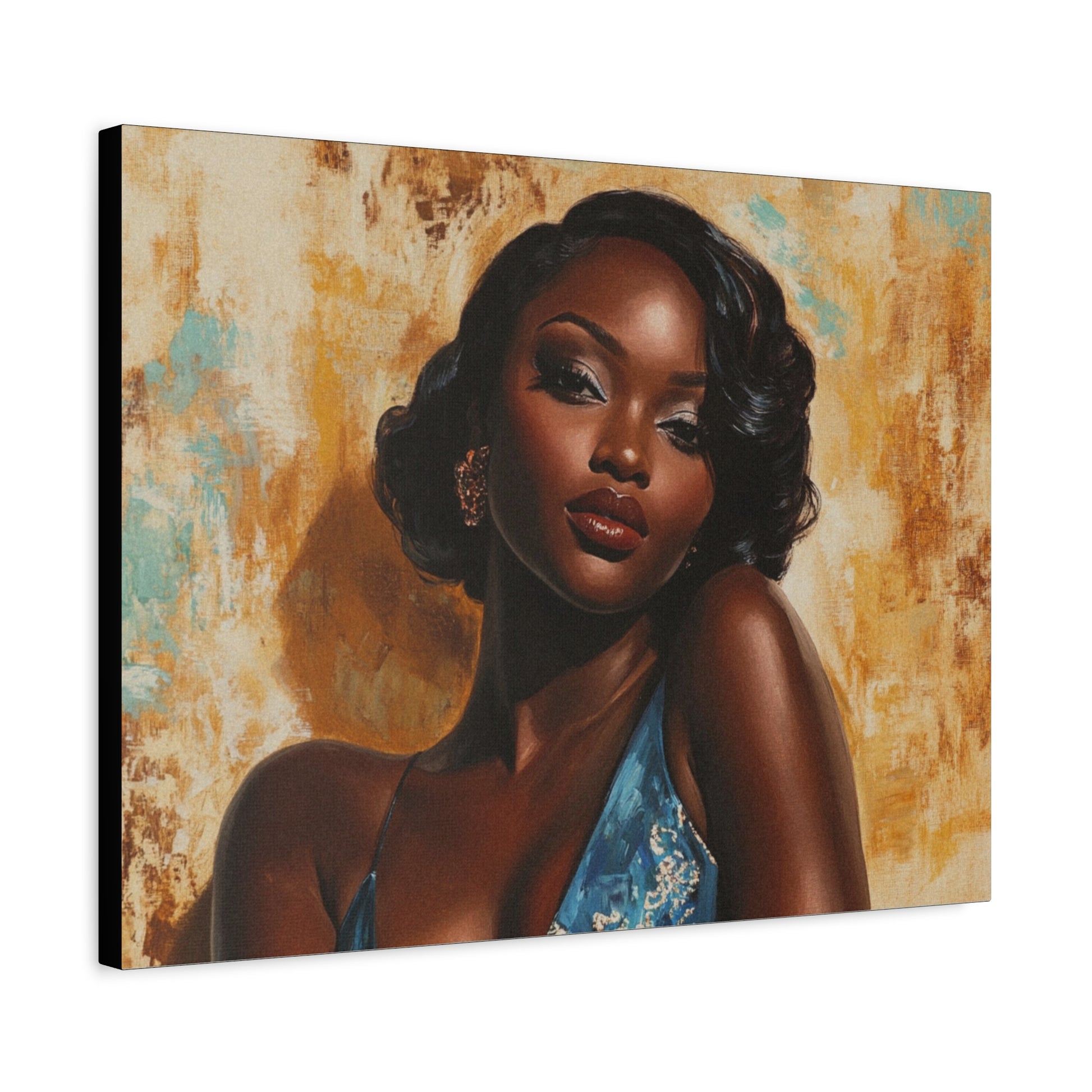 Sunkissed features the gorgeous Yvette with flawless skin tones rendered in rich, warm browns, complemented by glamorous makeup including defined brows, sultry eyes, and beautifully painted lips.
