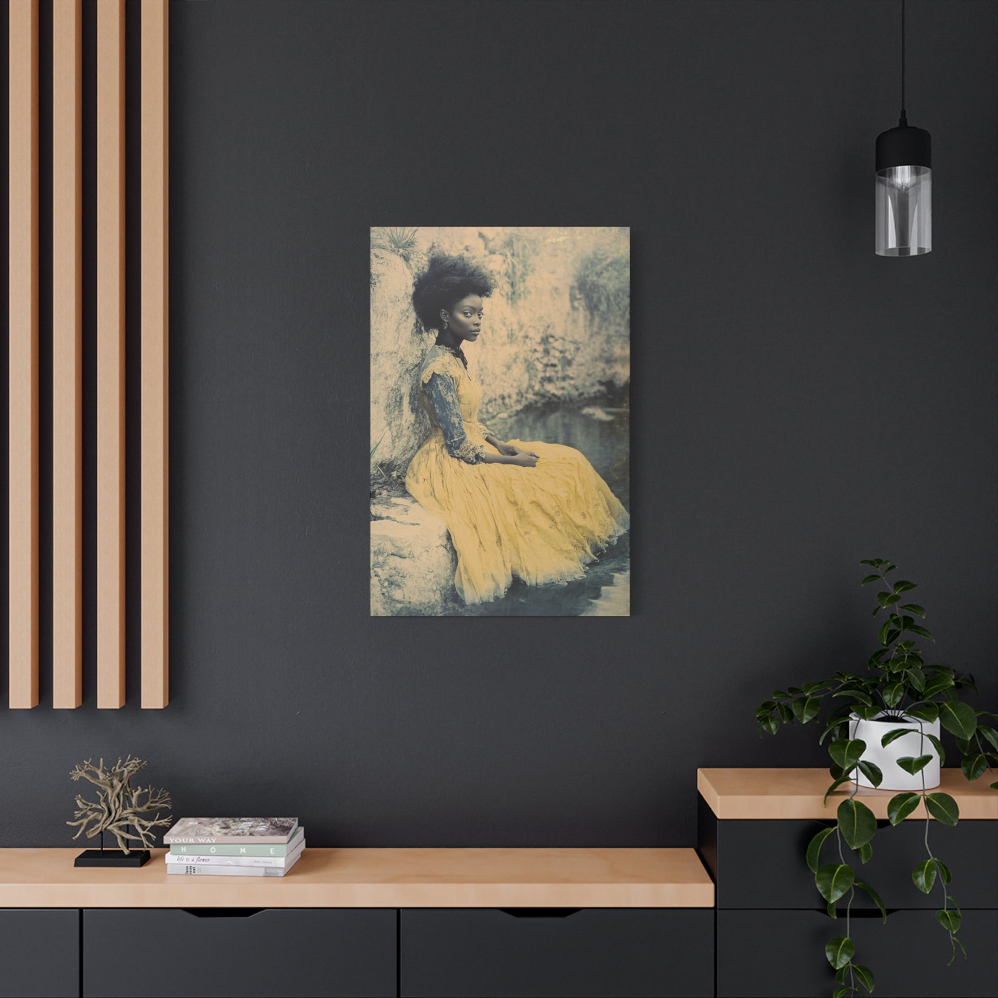 Cinematic Black Beauty - Natural Hair - Yellow Dress - Fountain